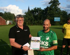 So kam es am vergangenen Freitag zur Ehrung durch den Kreisvorsitzenden des NFV-Fußballkreises Ostfriesland, Winfried Neumann, der ebenfalls lobende Worte für diese Aktion fand.